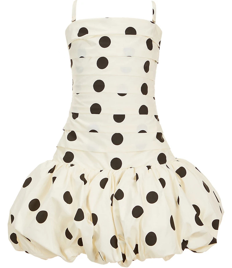 From KatieJNYC, this dress features: All-over dotted design Square neckline Sleeveless Adjustable shoulder straps Structured, pleated bodice Drop waist Bubble skirt Pullover styling Cotton Dry clean only Imported.