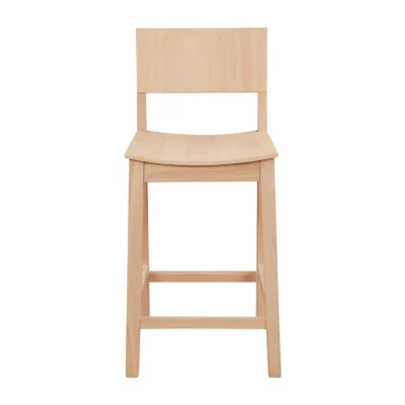 The ball is in your court with this modest yet robust midcentury modern counter stool. The sturdy rubberwood frame is unfinished, leaving the doors open for wide eyed dyers to seal and stain the piece in any color that best fits their dream ensemble. A slight curve in the saddle seat and a convenient footrest offer subtle support through long meals. With a seat height of 23.75", this set of two perfectly matches counters 35" to 39" high and supports up to 400 lbs each stool.