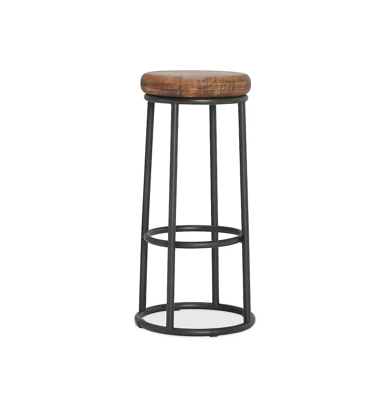 The Kendall Barstool is a clean-lined seating option that blends pine wood with a sturdy iron frame. A footrest bar lines the stool, adding both convenience and durability. Designed to fit any room s decor, the Kendall collection of barstools will elevate your home s style with their earthy colors and versatile silhouette.