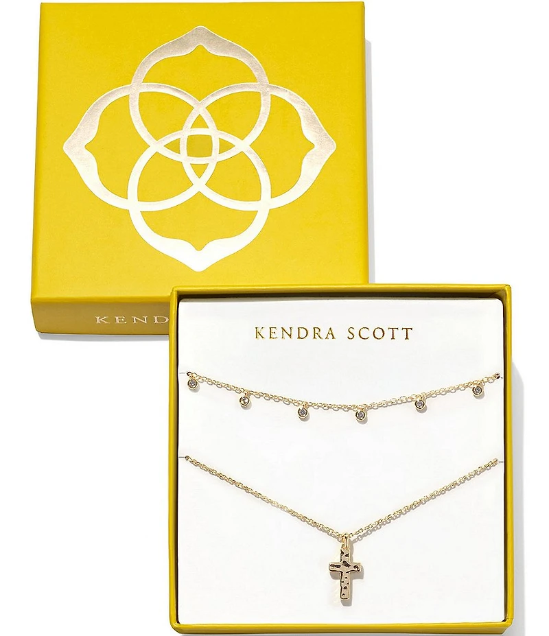 From Kendra Scott, the Amelia Cross Necklace Gift Set features: 14k gold over brass Spring ring closure Short pendant necklace approx. 19" length Collar necklace approx. 19" length Imported.