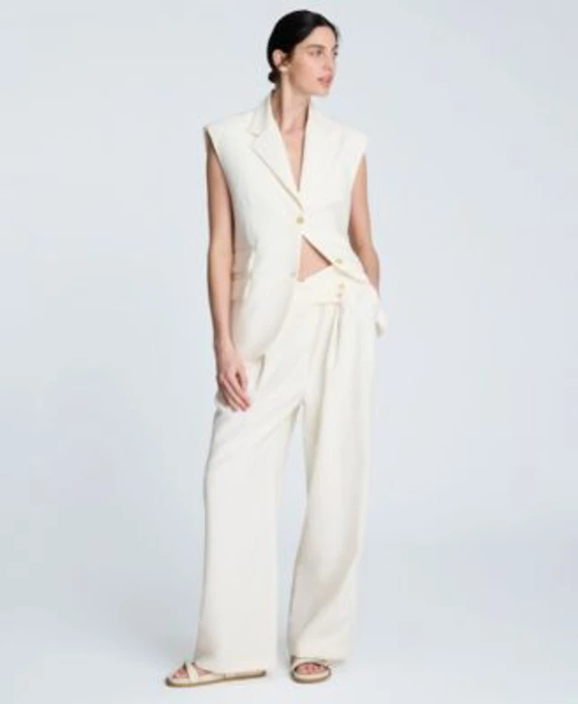 Kenneth Cole Womens Luxe Twill Triple Pocket Vest Crisscross Front Pleated Wide Leg Pants