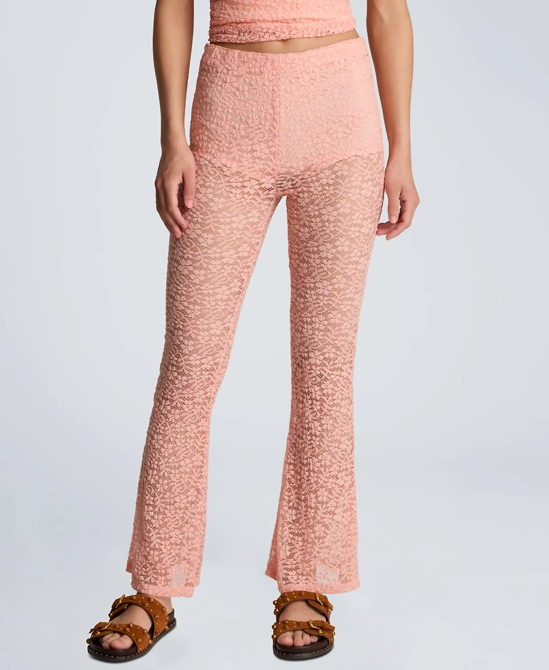 Create a chic look with these Kenneth Cole pants, featuring a flattering pull-on style and flowing flare silhouette. The inner lace detail adds a delicate, feminine touch, subtly enhancing their elegance while giving every step a refined, stylish finish.
