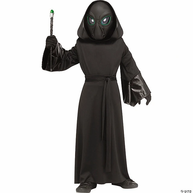 Kids Black Polyester Robe with Electro-Luminescent Mask Alien Costume