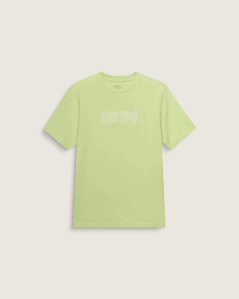 Grow up in the Kids Daisy Break T-Shirt, a short sleeve crew neck T-shirt. Using carded ringspun fabrication for a softer, smoother shirt, it features an embroidered Vans® logo made of daisies on the front.