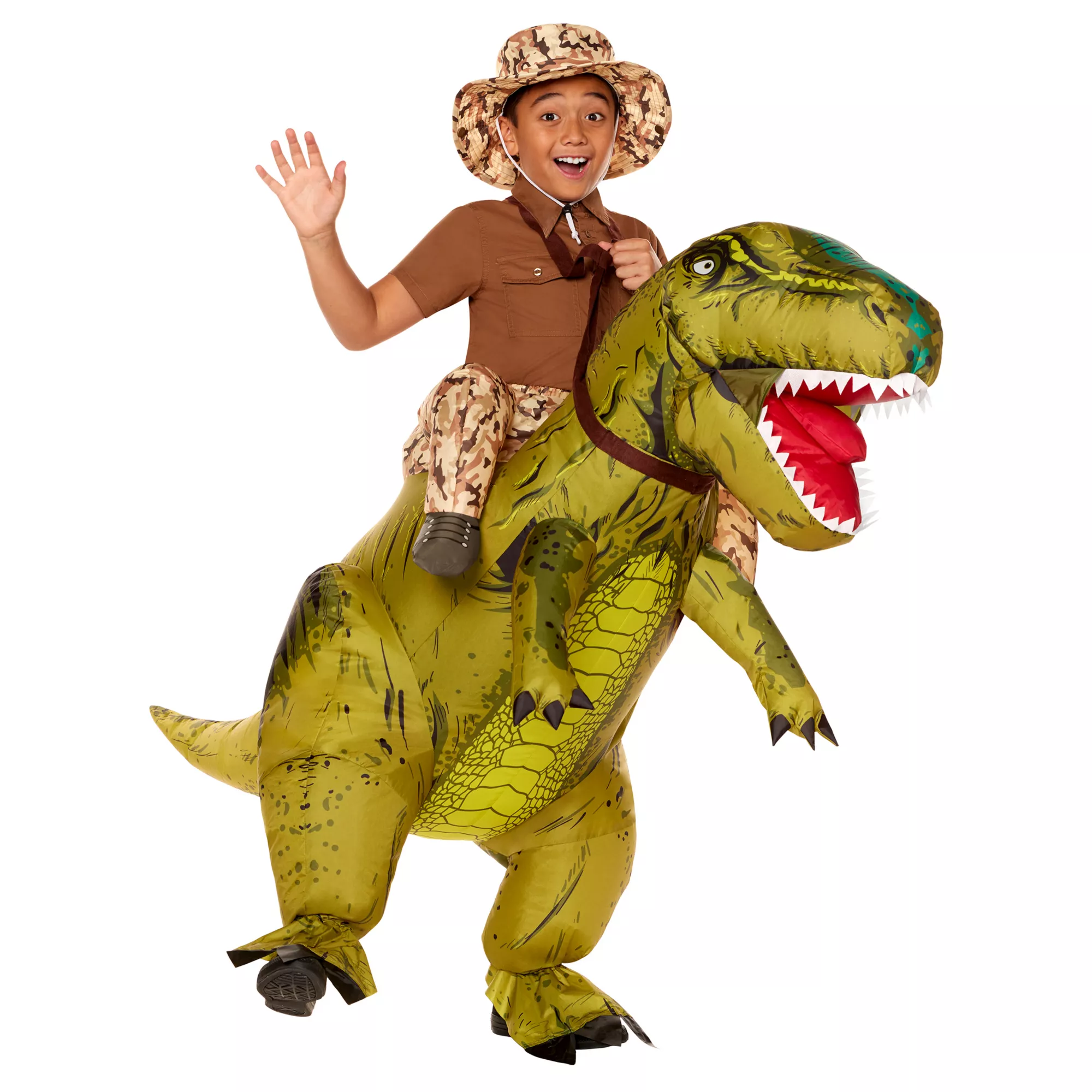 Make your grand entrance to the costume party in prehistoric style this Halloween when you dress up in this cool Dino Ride-Along Costume. You'll look just like a wild dino trainer once you slip into this ride-along costume. The included portable fan makes getting dressed up for parties quick and easy!