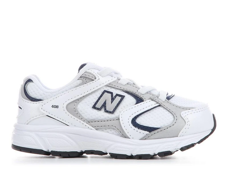 Kids' New Balance Infant & Toddler 408 Running Shoes The New Balance 408 Running Shoes are kids’ athletic sneakers designed for everyday activity, school, and casual wear. This slip on style features a layered upper with breathable mesh panels and synthetic overlays for structure and durability. A cushioned midsole helps provide underfoot comfort during active play, while the low-top silhouette supports natural movement. The versatile athletic design makes it suitable for running, playground use, and daily wear.