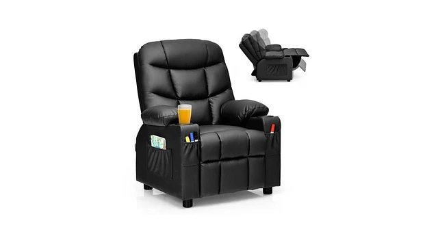 Kids Youth Recliner Chair Pu Leather w/Cup Holders & Side Pockets