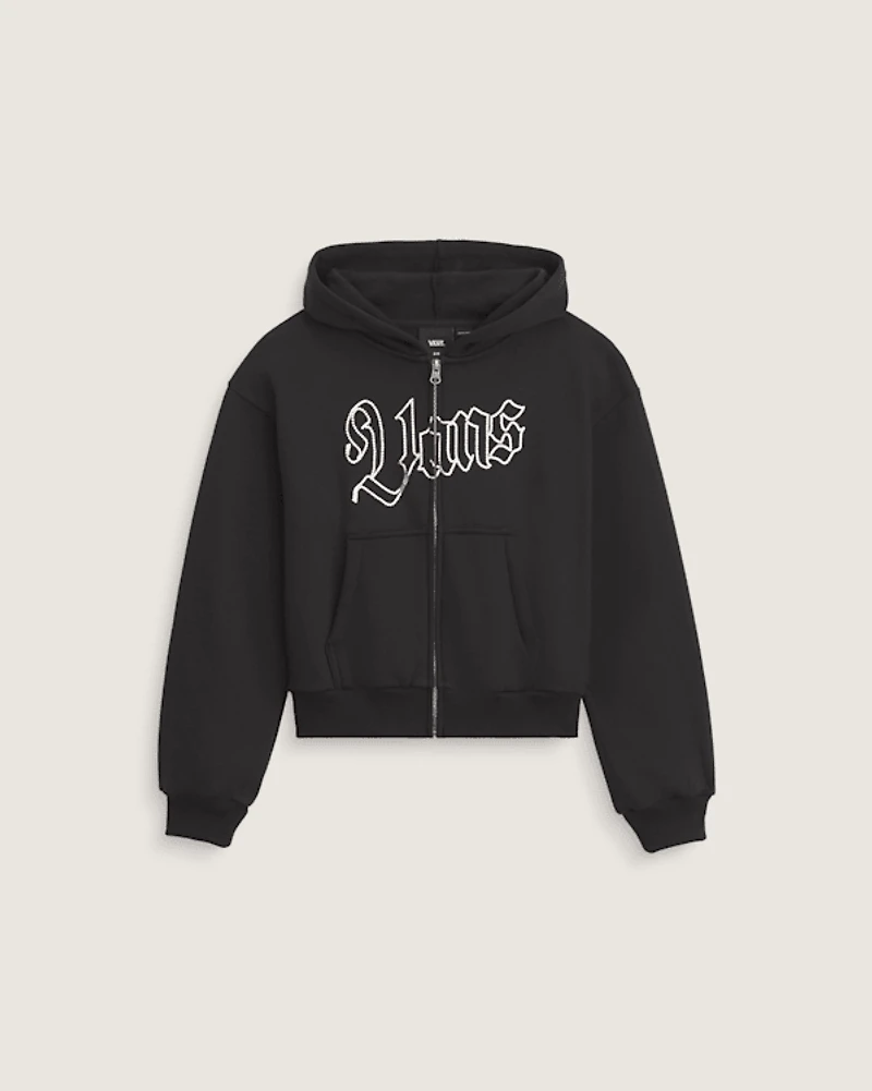 Give a little sparkle in the Big Kids Shining Zip Hoodie, with embroidery artwork that adds premium detailing featuring the outline of a scripted Vans logo stitched in shiny lurex across the chest. With soft and cozy fleece to keep you warm, it's finished with a full-length front zipper for adaptability.
