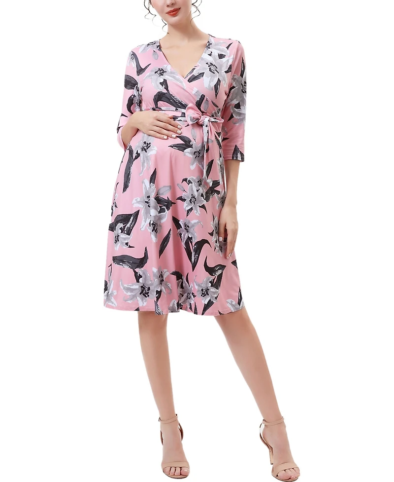 kimi + kai Maternity Floral Print Faux Wrap Nursing Dress