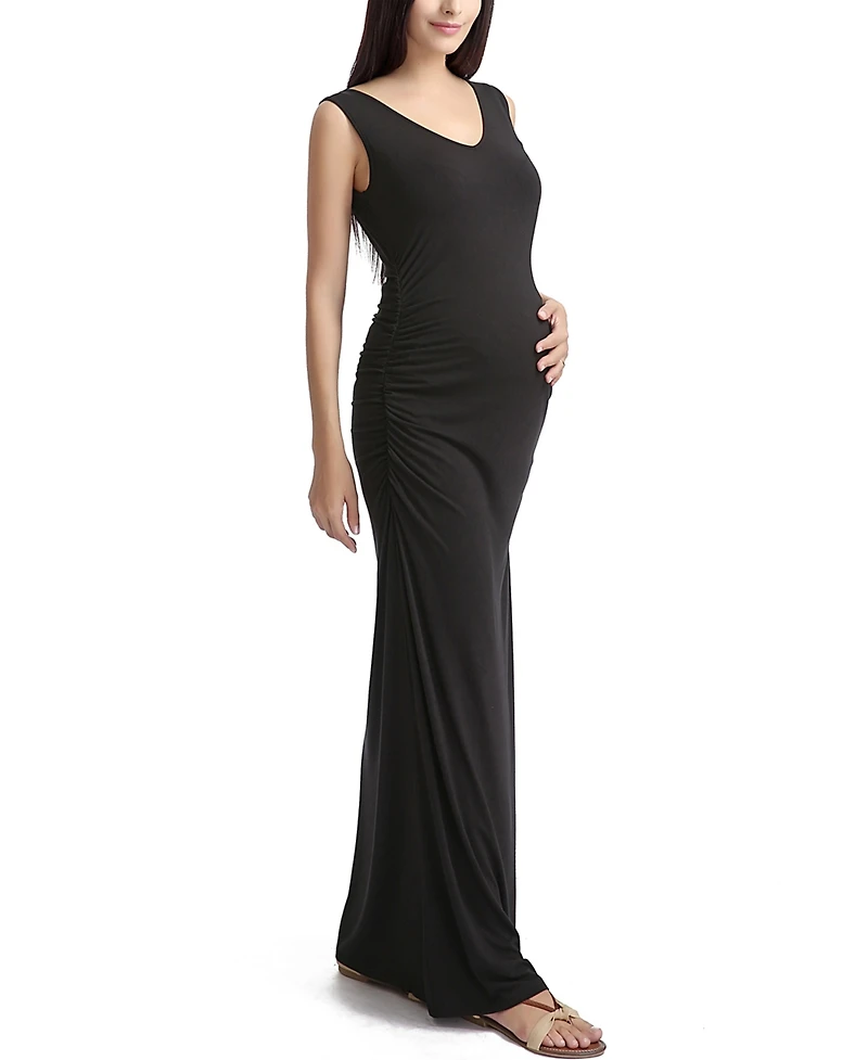 This stunning dress is highlighted with a stylish lace back panel with the added appeal of a maxi length. The flattering ruched side seams drape elegantly over your bump, flowing down to a full length.