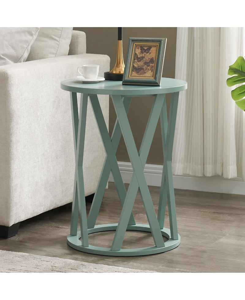 The Emma Side Table is a chic and versatile addition to any living space. With its compact design and elegant details, it seamlessly complements a variety of interior styles. It features a stylish crisscross base for added stability and a touch of contemporary style. The round tabletop provides a clean and minimalistic aesthetic. It is perfect for holding a lamp, decorative items, or everyday essentials like a cup of coffee. Whether used in the living room, bedroom, or hallway, the Emma Side Table offers functionality and a modern flair.