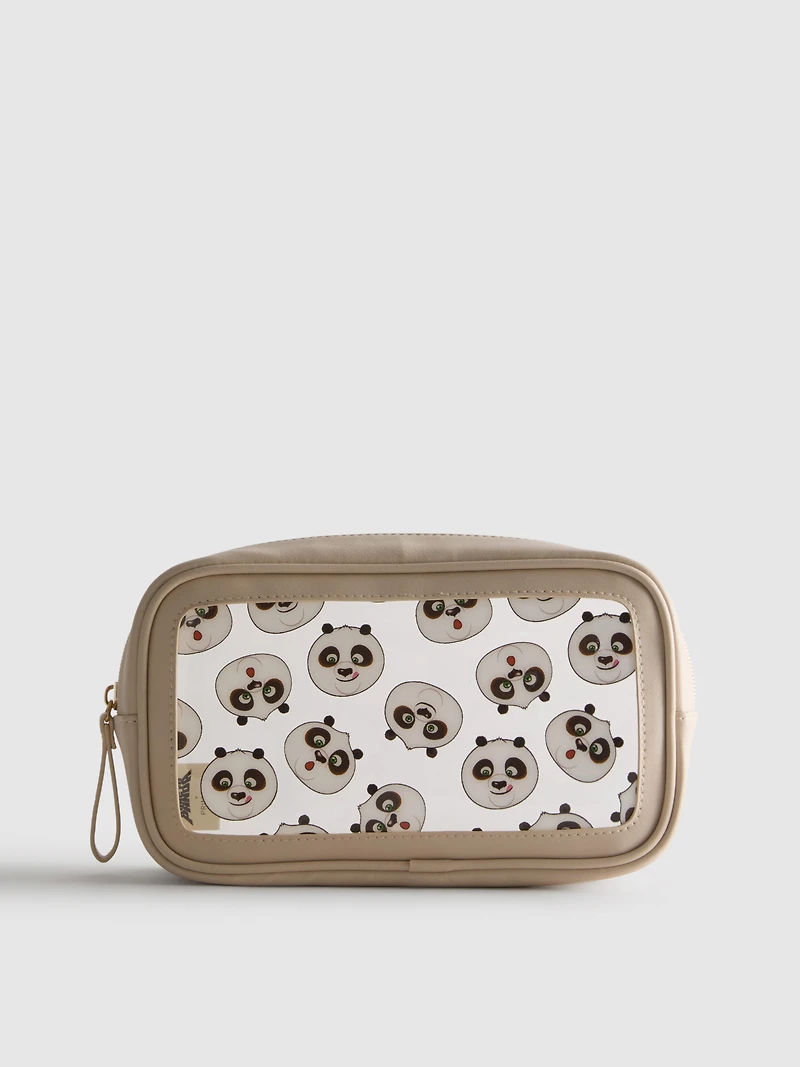 Boxy makeup bag with zip featuring clear window with a Kung Fu Panda Po print