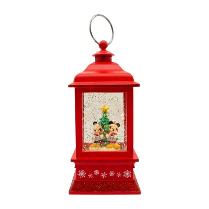 This 9-inch battery-operated disney© mickey and minnie spinning musical light-up lantern from kurt adler is a fun and festive addition to any holiday décor. It features mickey mouse and minnie mouse standing in front of a decorated christmas tree. Each are holding a music book and when activated, this lantern is illuminated with one warm white led light and plays 8 different christmas songs and the swirling glitter design gives the scene a snowy effect. Requires 3 aa batteries, not included.