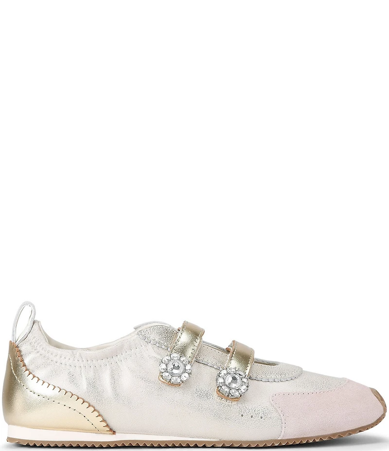 From Kurt Geiger London, the Islington Multi Jewel Ornamented Mary Jane Sneakers feature: Suede, leather and synthetic upper Oversized rhinestone ornament on straps Velcro double strap closure Fabric lining Rubber outsole Imported.