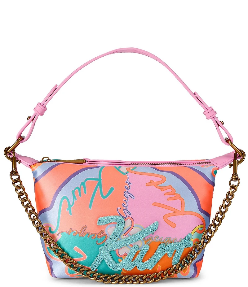From Kurt Geiger London, the Kurt Soft Shoulder Bag features: Nylon exterior with Kurt branding Leather trim Synthetic lining Adjustable single strap & single handle Zip closure Approx. 5.51" H x 6.69" L x 3.93" D Approx. 17.71" handle strap drop Imported.