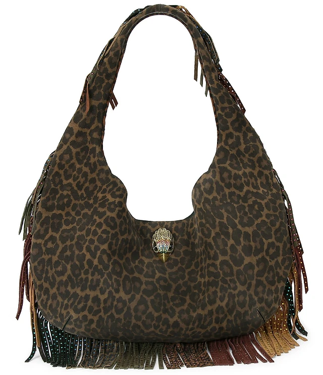 Kurt Geiger London Shoreditch Large Leopard Slouchy Rhinestoned Fringe Hobo Bag
