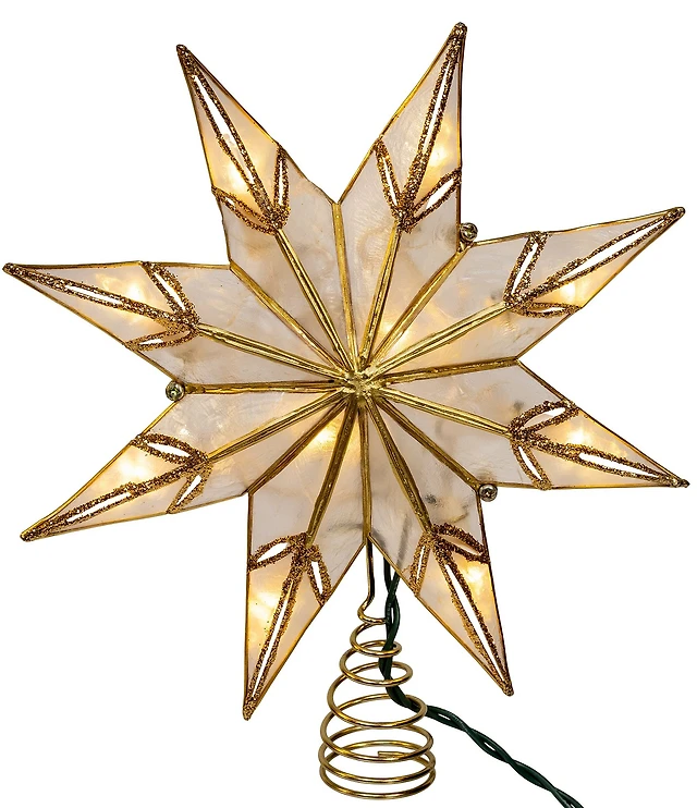Kurt S. Adler 10-Light Gold With Glitter Finish Capiz Star Treetop