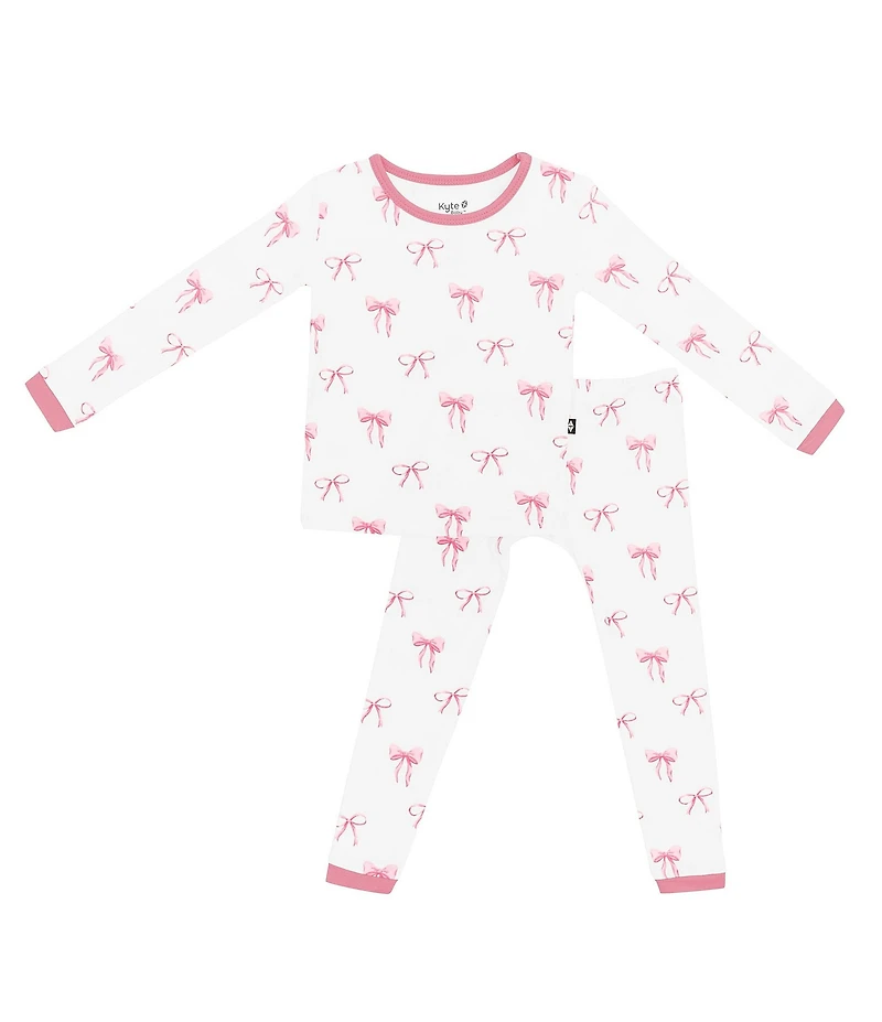 Kyte BABY Little Girls Bamboo Bow Print Long Sleeve Top & Pajama Pants SetKyte BABY Little Girls Bamboo Bow Print Long Sleeve Top & Pajama Pants Set