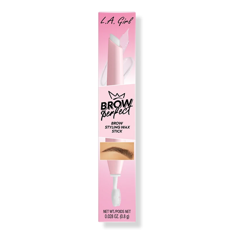 LA GIRL BROW PERFECT WAX STICK - CLEAR. Benefits: Extreme hold keeps brows in place all day. Tames, sculpts, and lifts for clean, defined brows. Shapes unruly brow hairs instantly. Clear finish works on all hair colors. Flake-free and non-crunchy texture. Enhances natural brow shape. Ideal for fluffy or laminated brow looks. Can be used alone or over other brow products. Features: Wax pomade formula in stick format. Built-in brush for shaping and styling. No residue or white cast. Easy, mess-free application. Compact size perfect for on-the-go touch-ups. Glides on smooth without tugging. Flexible hold for customizable brow definition. Comfortable wear without stiffness. Formulated Without: Parabens. Sulfates. Phthalates. Alcohol. Fragrance.