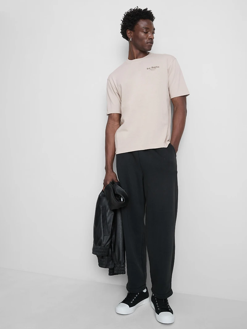 A graphic sweatshirt with LA design, round neckline, and long sleeves