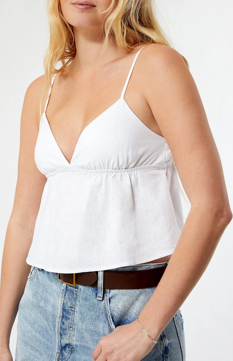 LA Hearts Linen V-Neck Babydoll Tank Top