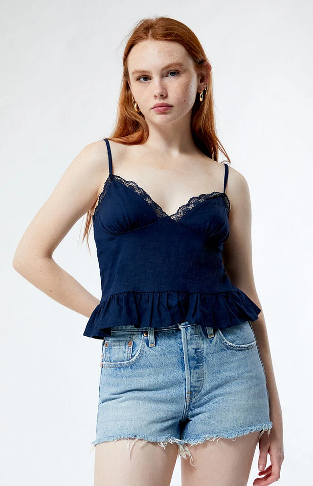 LA Hearts Lace Trim V-Neck Babydoll Tank Top
