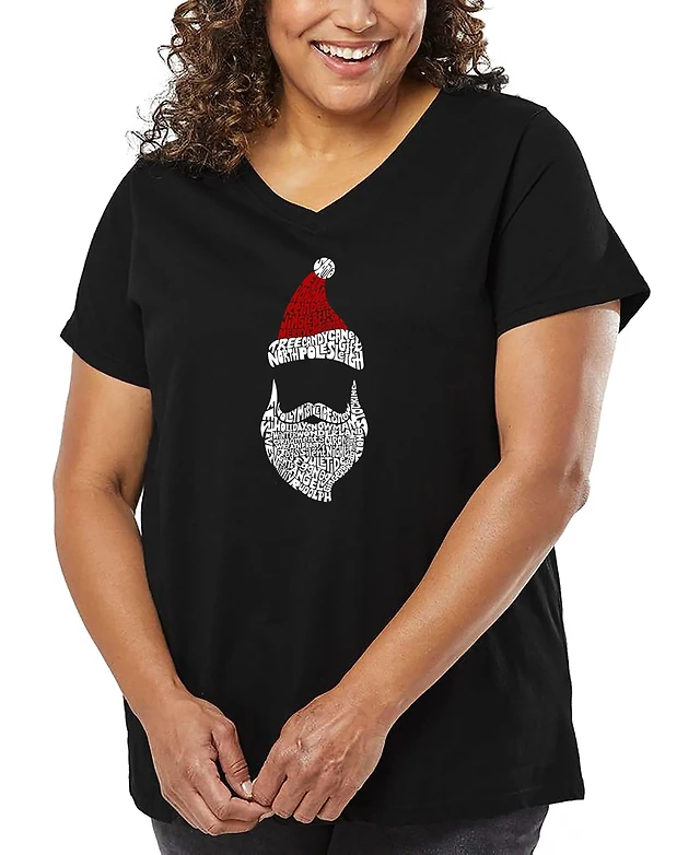 La Pop Art Plus Santa Claus Word V-Neck T-Shirt