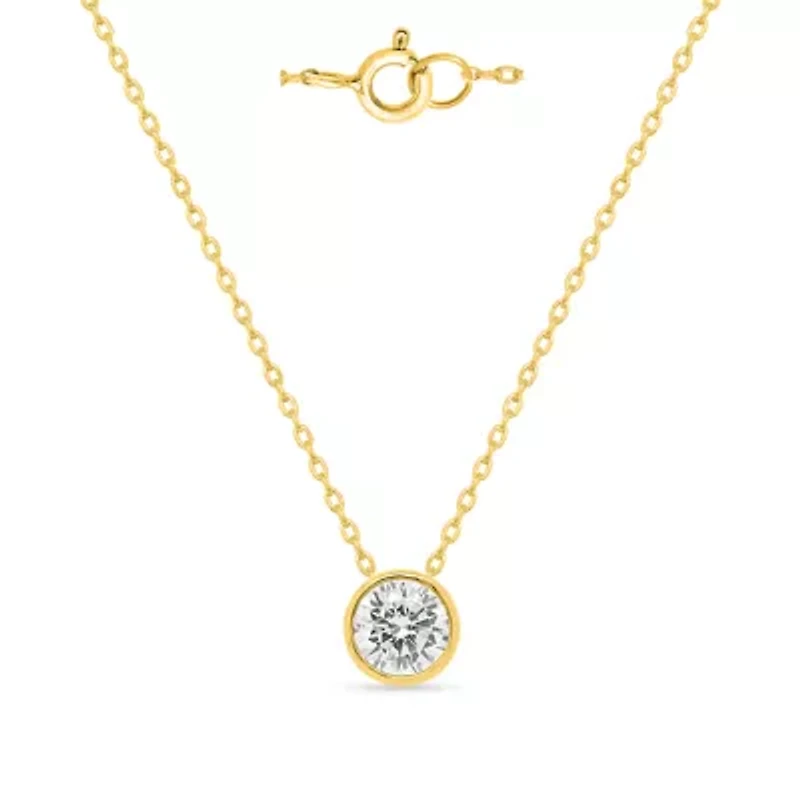 Lab Created 1 Ct Oval Grown Diamond Bezel Set Solitaire Pendant Gold Plated Sterling Silver
