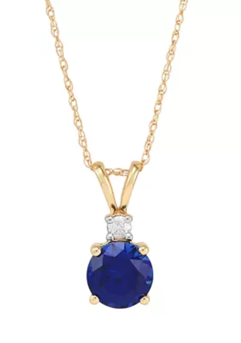 Lab Created 1/10 ct. t.w. Diamond and Created Sapphire Pendant Necklace with 18" Rope Chain in 10K Yellow Gold in Franklin, TN