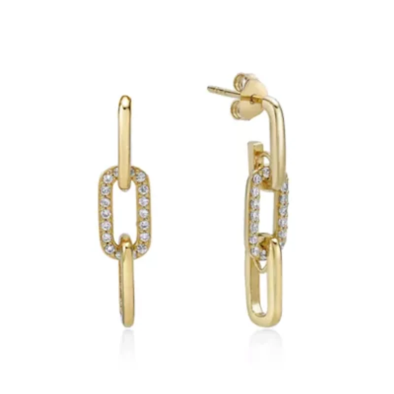 Add graceful sparkle to any look with these 0.32 ct. t.w. lab-grown diamond drop earrings, crafted in sterling silver with luxurious 18K gold plating. Featuring brilliantly cut lab-grown diamonds that catch the light with every movement, these earrings offer an elegant drop silhouette that feels both timeless and modern. The warm gold finish enhances the diamonds’ radiance, making them a perfect choice for special occasions or elevating everyday style with refined sophistication. 2 pieces Post back, 36 Color rating: H, G Clarity rating: VS2-SI1 Polished finish Prong setting Thailand Imported Product Specifications 28mm x 14mm 0.32 Material & Care Metal, Gold plated Clean with a soft cloth.
