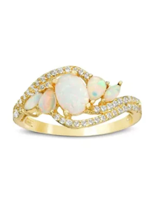 Lab Created 0.85 ct. t.w. Lab-Created Opal and 1/6 White Sapphire Ring Gold Plated Sterling Silver