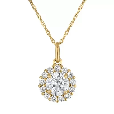 Lab Created 14k Yellow Gold 1.4 cttw Lab-Grown Diamond Round Halo Pendant