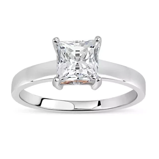 Lab Created 18K Gold Plated Sterling Silver 6x6mm Square White Cubic Zirconia Halo Filigree Ring