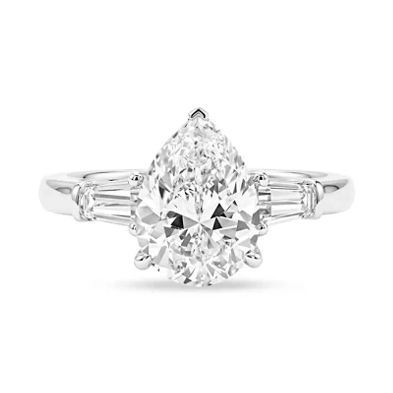 Lab Created 2.60 Cttw Pear & Baguette Cut Lab-Grown Diamond Women's Engagement Ring in 14K White Gold, Size 6.5