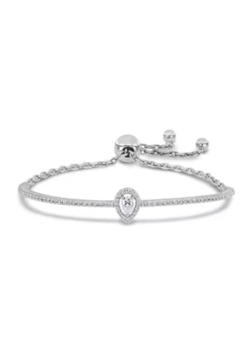 Lab Created 3/4 Ct DEW Created Moissanite Pear Shape Halo Adjustable Bolo Bracelet in Sterling Silver
