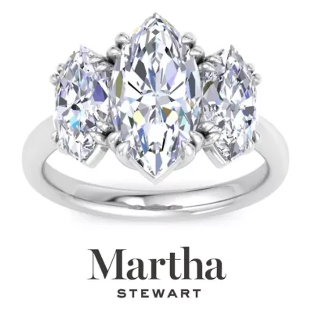 Lab Created 5 Carat Marquise Shape Grown Diamond Three Stone Engagement Ring Available 14K White and Yellow Gold