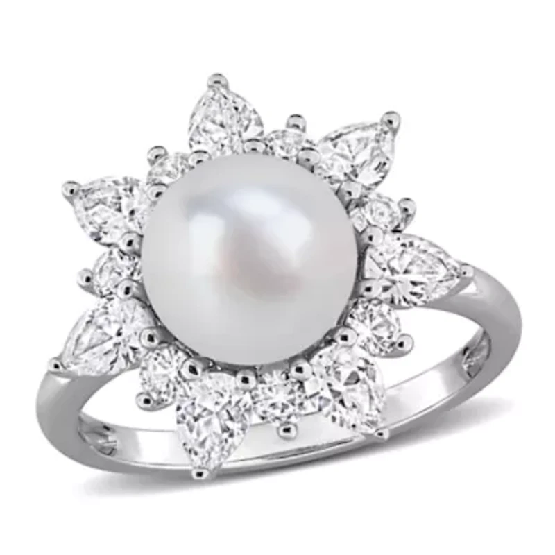 Lab Created 8-8.5mm Freshwater Cultured Pearl & White Sapphire Floral Cocktail Ring Sterling Silver in Franklin, TN