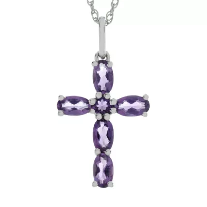 Lab-Created Amethyst Sterling Silver Cross Pendant Necklace in Franklin, TN