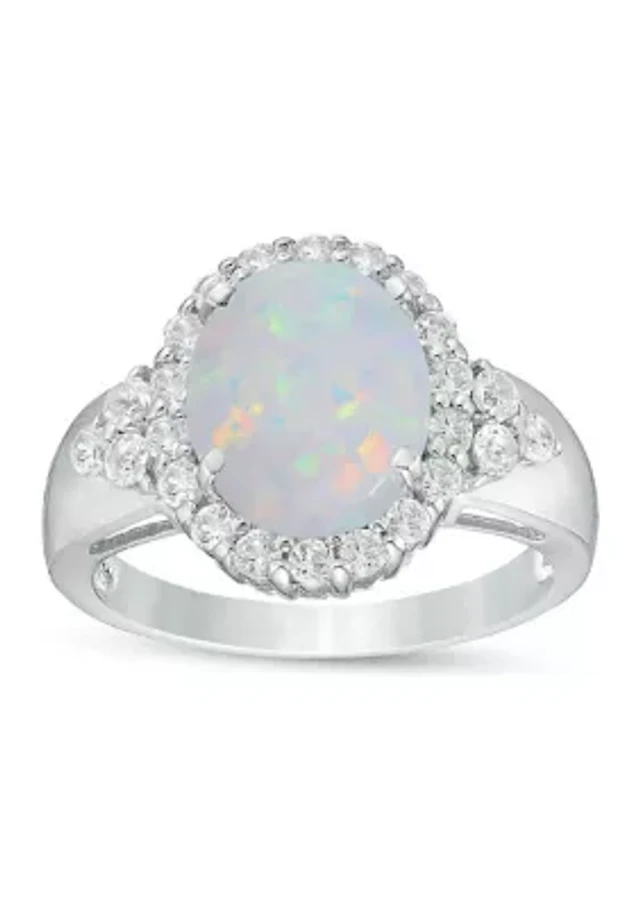 Lab-Created Opal & White Lab-Created Sapphire Ring Sterling Silver