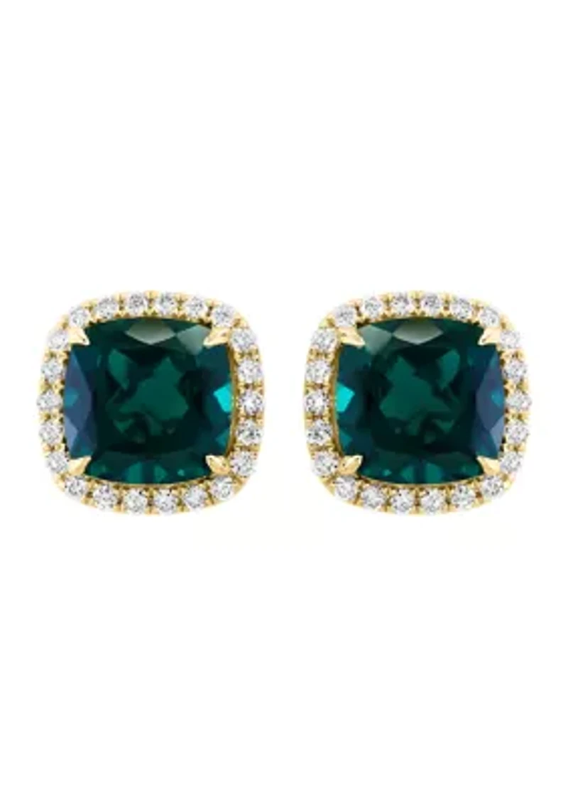 Lab Created Diamond and Emerald Square Earrings in 14K Yellow Gold in Franklin, TN