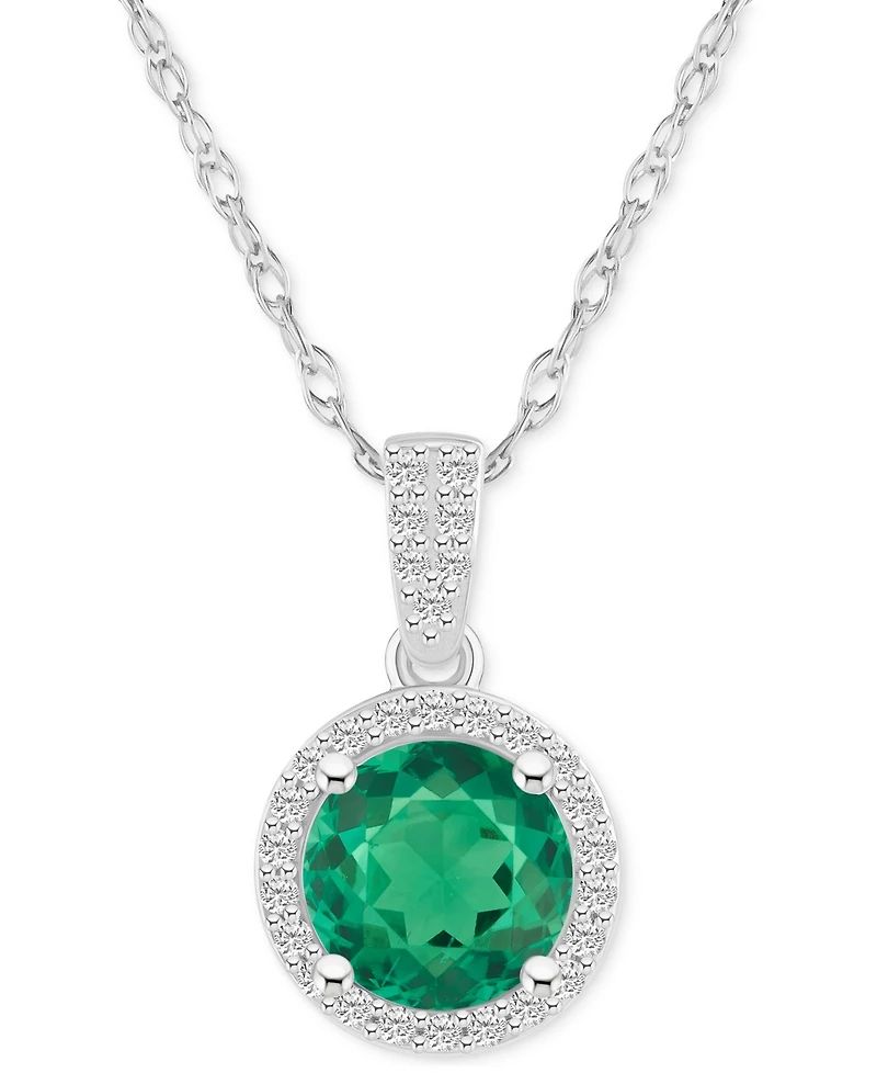 Add a hint of color and sparkle to your fave outfits with this elegant lab-created emerald and white sapphire halo pendant neckalce.