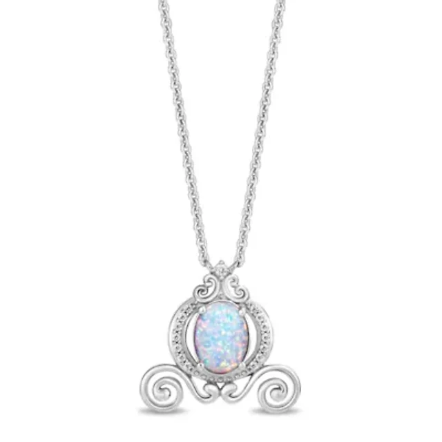 Enchanted Disney Fine Jewelry Womens Diamond Accent Lab Created White Opal Sterling Silver 18 Inch Pendant Necklace