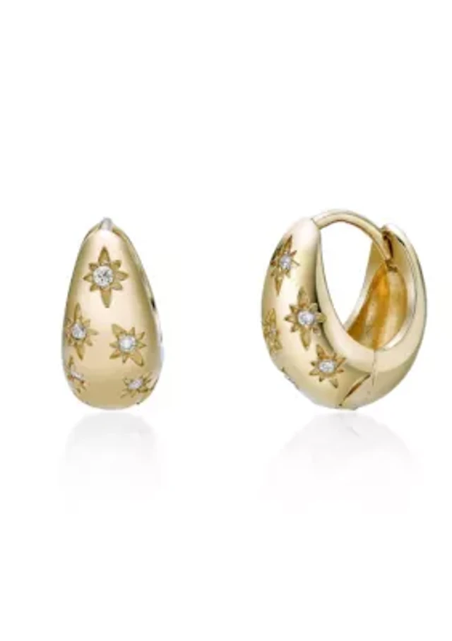 14K Gold Plated 1/10 CT. TW. Lab-Grown Diamond Dangle Huggie Hoops