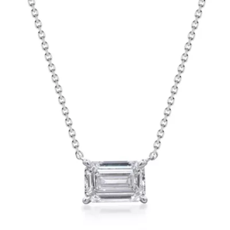 TW4604N Emerald Cut Lab Grown Diamond Necklace in 14K White Gold 1 Lab Grown Diamond Clarity rating: VS1 Polished finish Prong setting THAILAND Imported Product Specifications 2.09 ct. tw. Lab Grown Diamond Material & Care White gold Clean with a soft cloth.