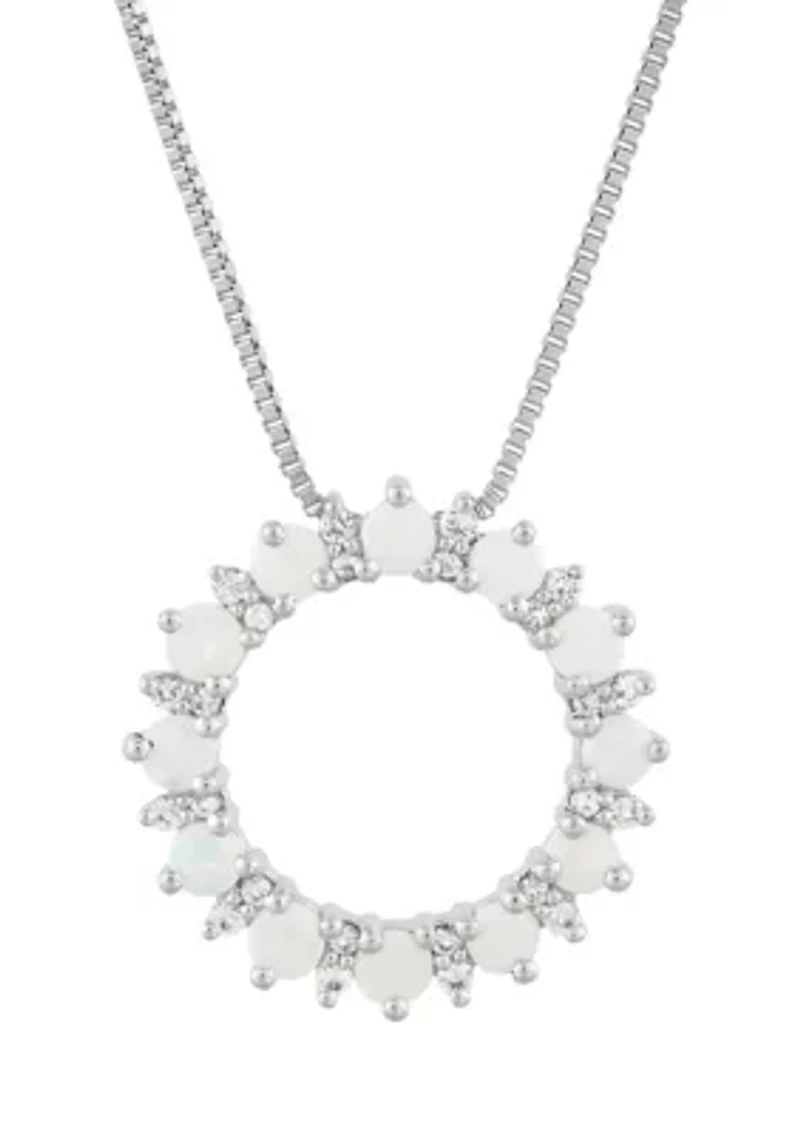 Lab Created Opal and White Sapphire Circle Pendant Necklace with 18" Box Chain in Sterling Silver