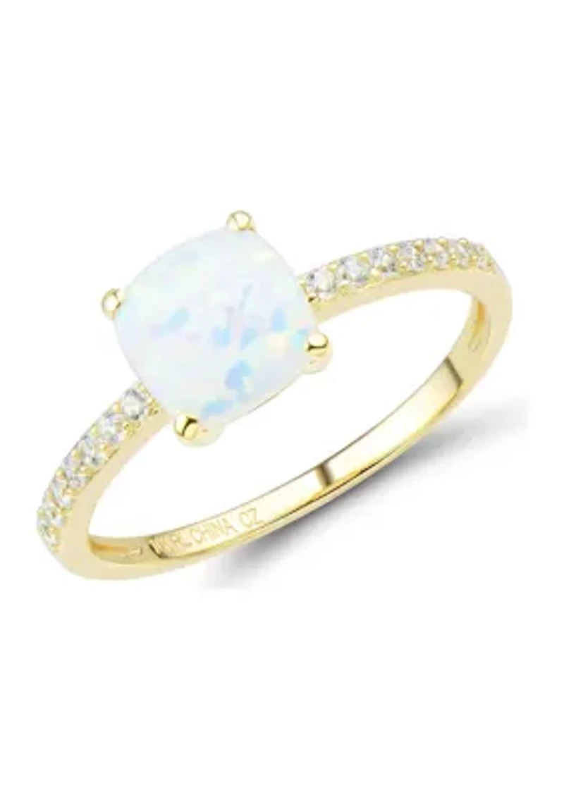Lab Created Opal and White Sapphire Ring in 10K Yellow Gold