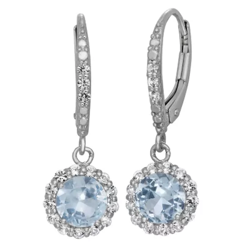 Lab Created Sterling Silver Created Aqua Leverback
