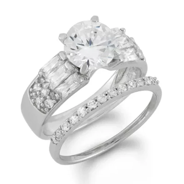 Lab Created Sterling Silver White Cz Halo Stackable Ring