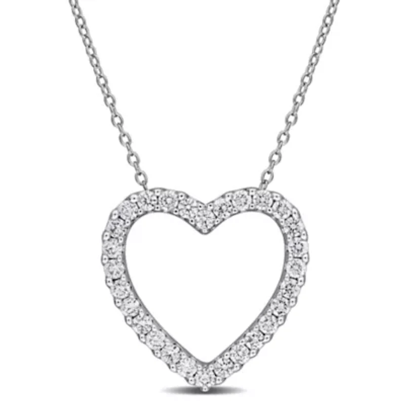 Radiate understated elegance with this lab-grown diamond fashion pendant. Set in polished sterling silver, the sparkling diamond catches the light with every movement, creating a subtle yet captivating glow. Suspended from a delicate chain, it adds a touch of sophistication to any outfit. A timeless piece that blends modern style with classic refinement. Spring ring clasp, 28 lab grown diamond Color rating: G, H Clarity rating: VS1-VS2 Polished finish Prong setting Warranty available, 60 days Thailand Imported Product Specifications 21.9-mm width x 21-mm height, 18" 1 ct. t.w. lab grown diamond Material & Care Sterling Silver Metal, Sterling silver Clean with a soft cloth.