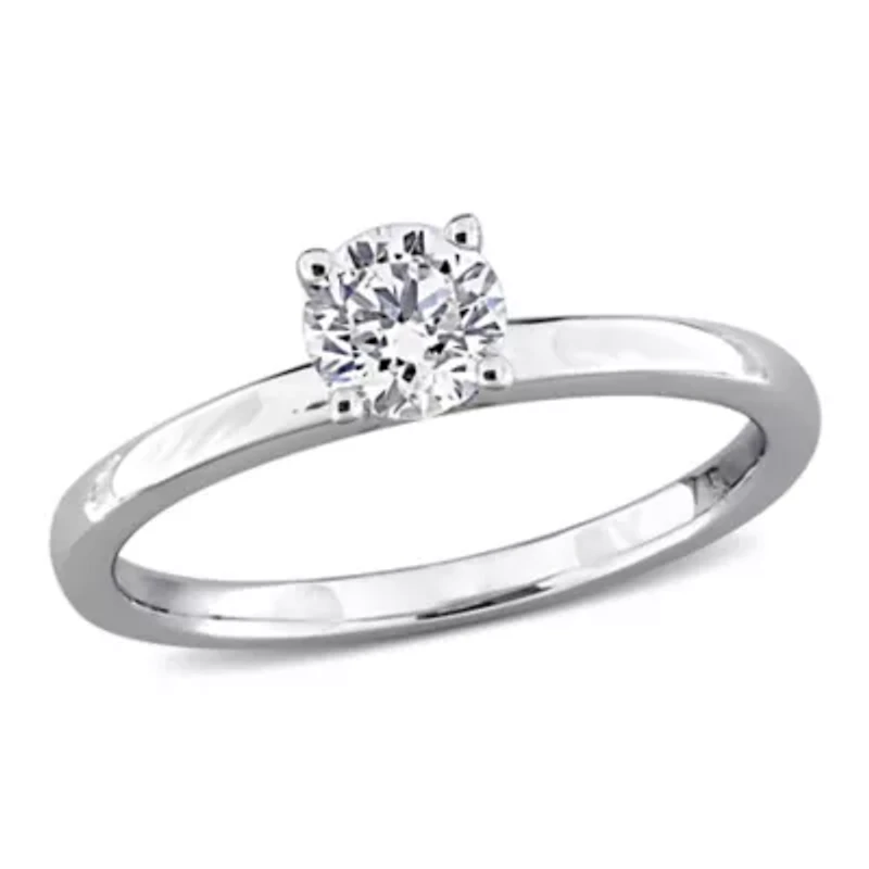 Simple, radiant, and endlessly elegant, this 10k white gold solitaire engagement ring captures the beauty of true love. A luminous lab-grown diamond sits at the center, reflecting light with delicate brilliance and timeless charm. Its classic setting highlights the stone’s natural sparkle while offering a refined, graceful silhouette. More than a ring, it’s a heartfelt symbol of commitment and a future shared together. 1 lab grown diamond Color rating: G, H Clarity rating: VS1-VS2 Polished finish Prong setting Warranty available, 60 days Thailand Imported Belk Exclusive Product Specifications 5-mm width x 20.7-mm height 1/2 ct. t.w. lab grown diamond Material & Care 10K White Gold Metal, White gold Clean with a soft cloth.